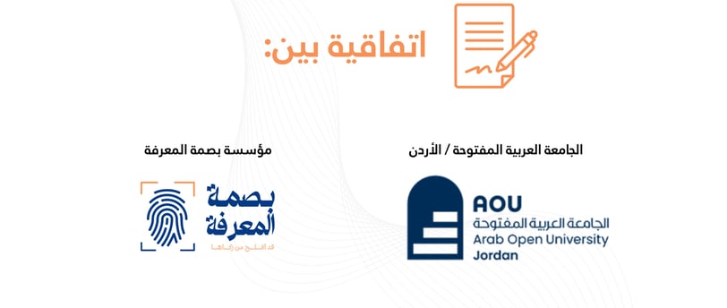 وقّعت مؤسسة بصمة المعرفة اتفاقية تعاون مع الجامعة العربية المفتوحة – الأردن، بهدف تعزيز التعليم وتطوير المهارات التربوية من خلال دمج التكنولوجيا الحديثة.